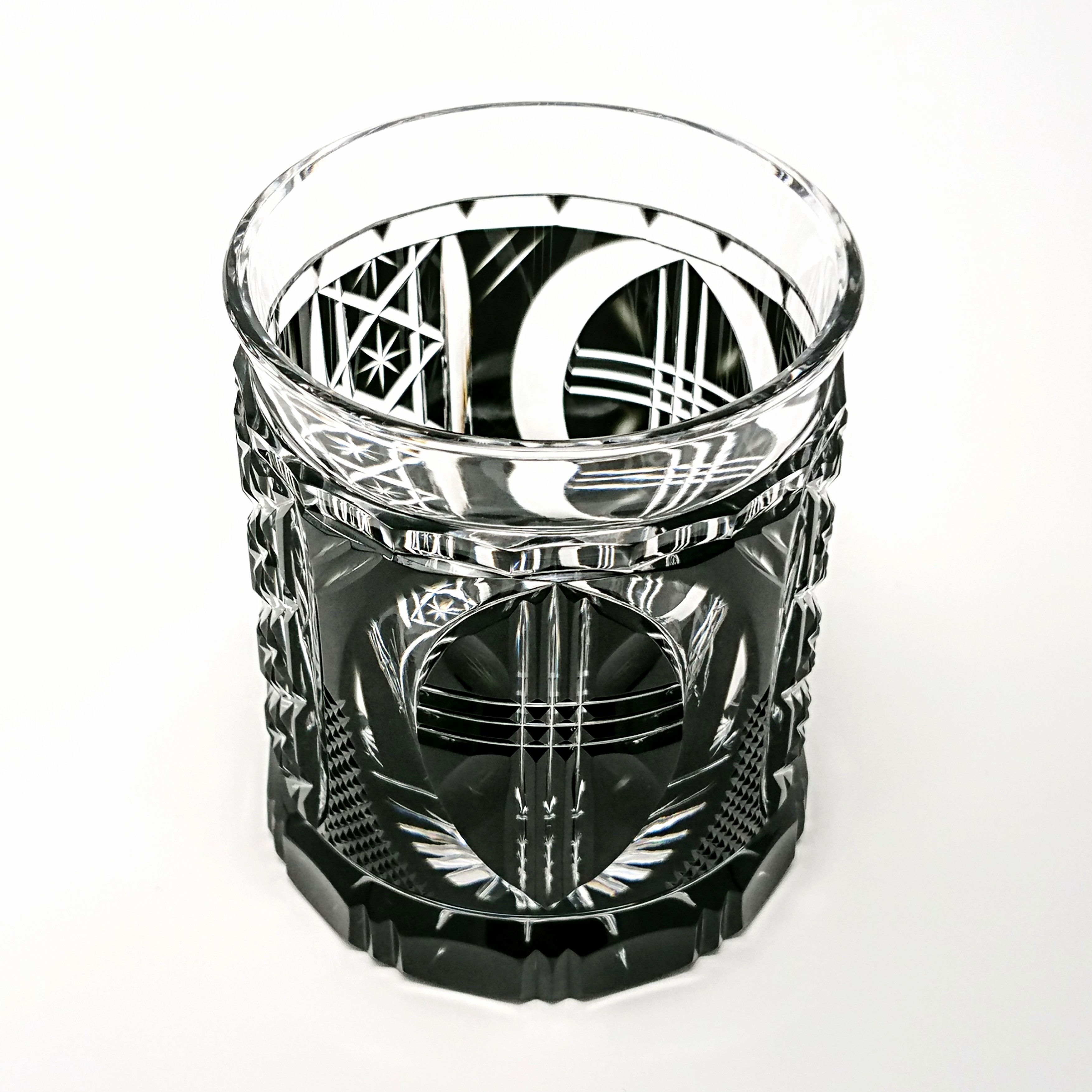 薩摩切子 オールドファッション(ロックグラス)「ゾウの靴」︰黒は、深い黒色が醸し出す落ち着きが印象的な超高級グラスです。