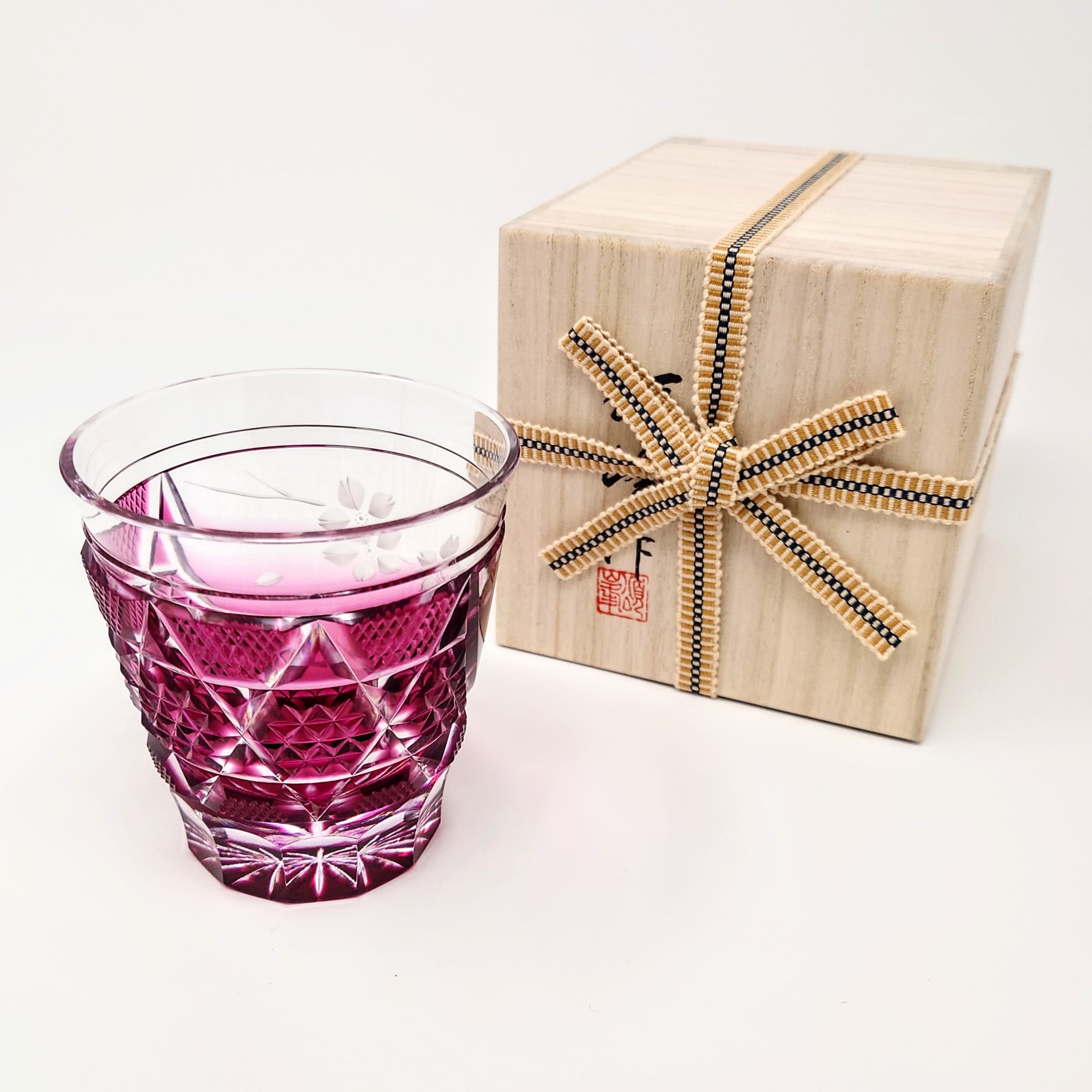 薩摩切子 オールドロック (ロックグラス) 「花やか」︰金赤 (展開型) 頌峰作