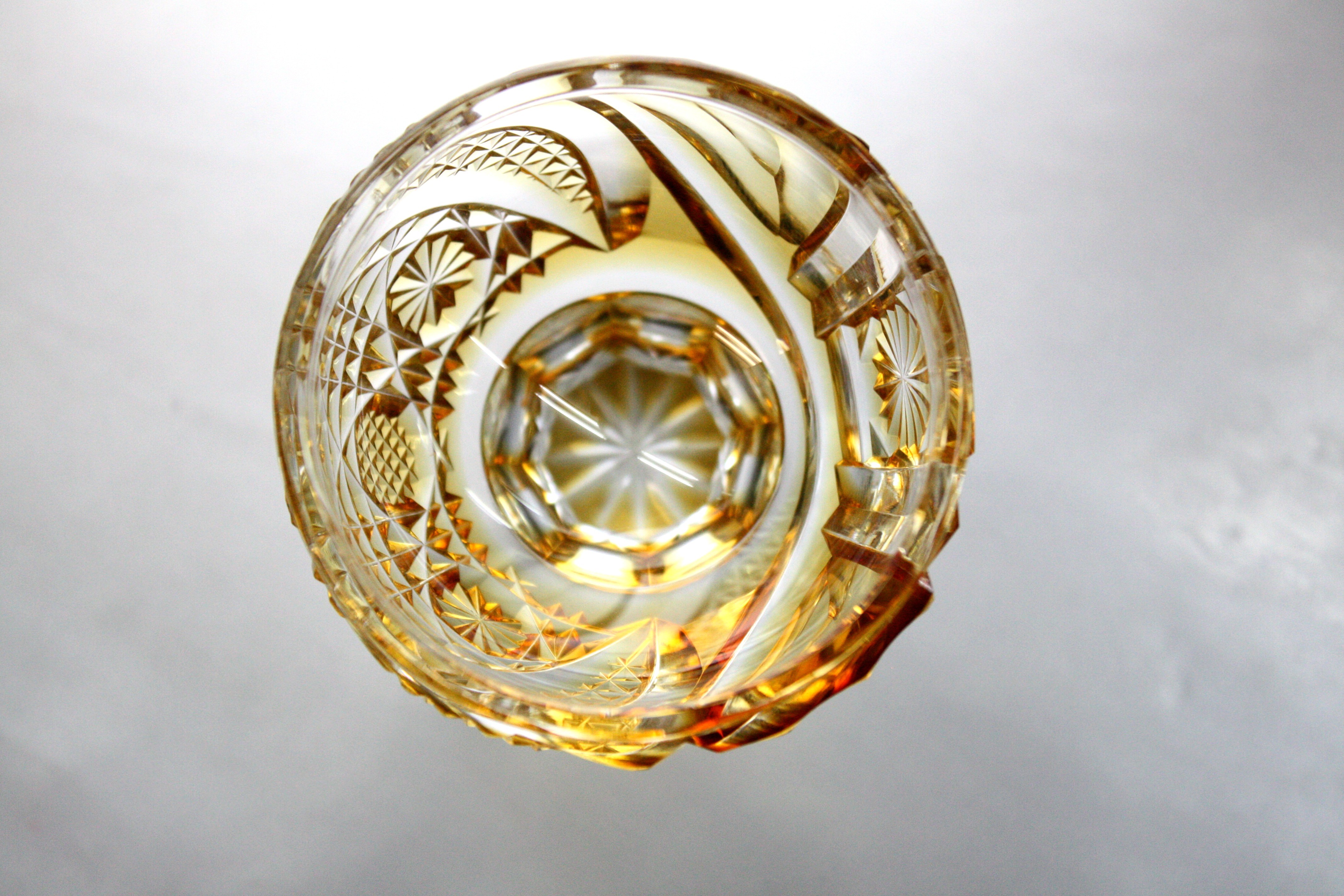 ガラスアーティスト 頌峰(しょうほう)によるこの作品は、エレガントなアンバーに染まった「馬上杯:ゴールド」です。