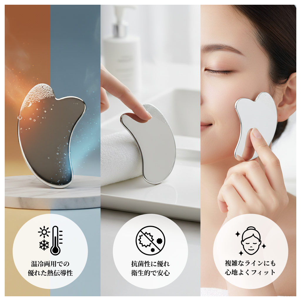 江戸時代から続く東京銀器の伝統を受け継ぐ職人が、世界中の美容とウェルネスを愛する人々から届いた「効果の持続性と、衛生的で贅沢な使用感が欲しい」という声に応え、純銀の特性と工芸美を融合させた「次世代のかっさ」を追求。